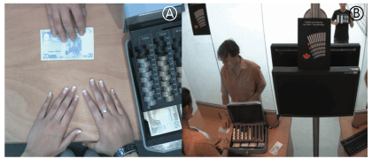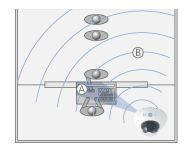 Ⓐカウンタ上の手元と、Ⓑ店内を1台のカメラで同時監視している映像